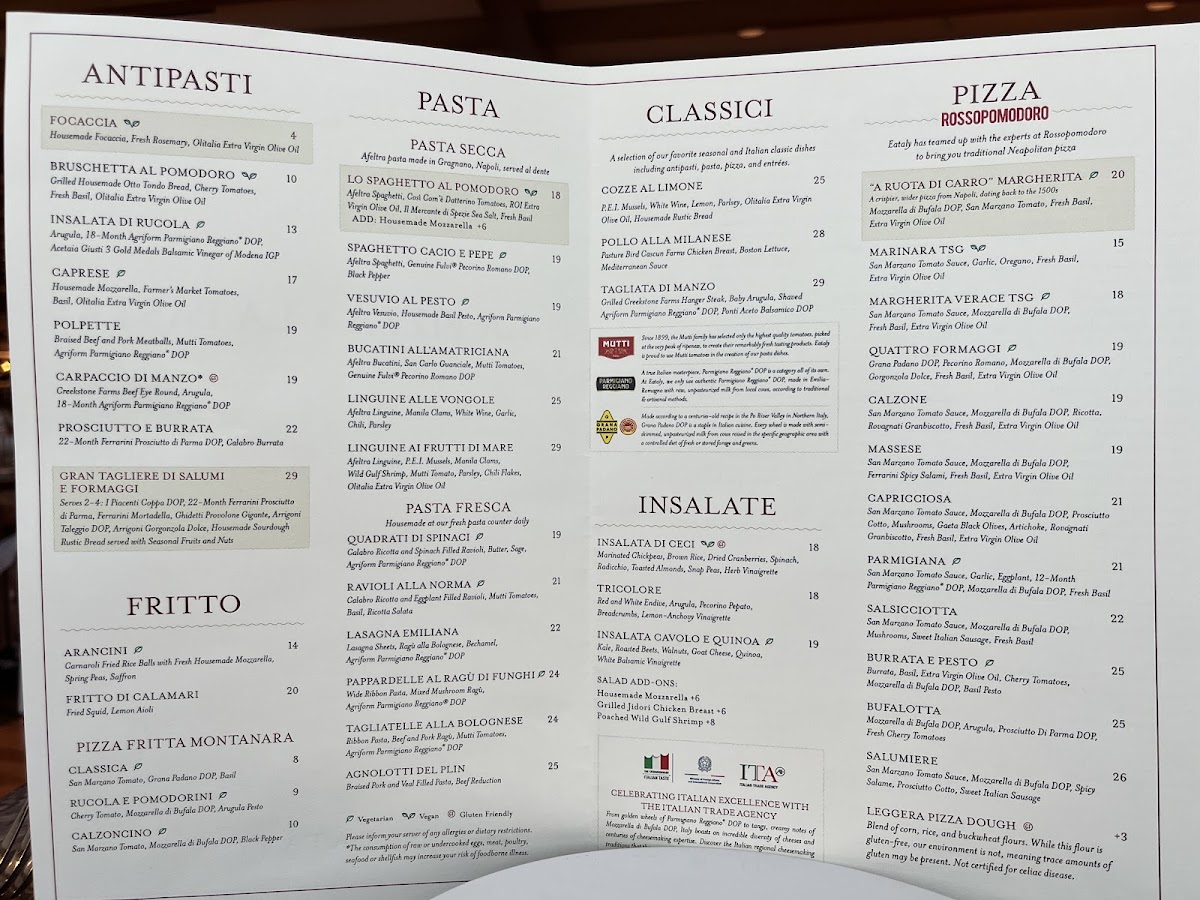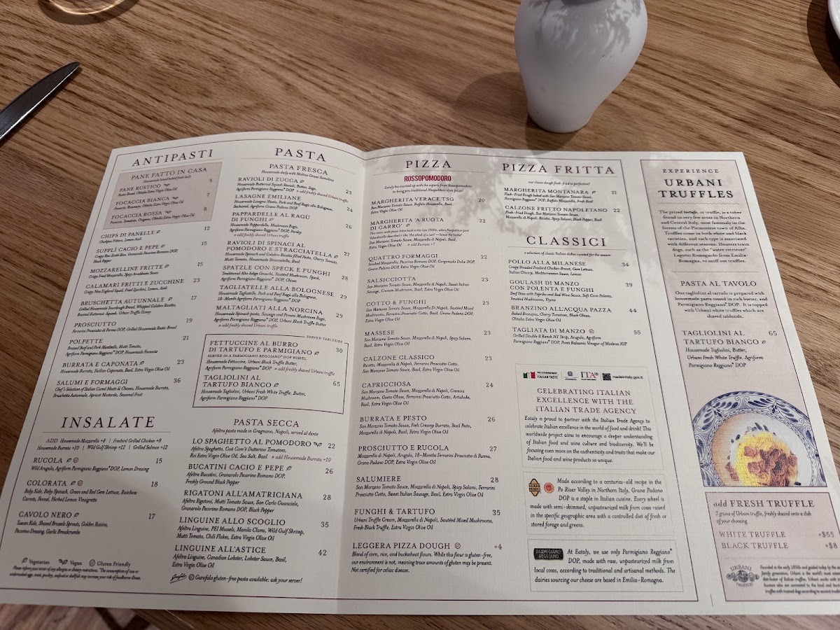 As you step inside, you are enveloped in a warm and inviting atmosphere, perfect for everything from family gatherings to romantic dinners. The rustic yet modern decor echoes the charm of Italy, creating a comfortable space for you to enjoy your meal. Whether you're looking for a casual lunch or a celebratory dinner, Eataly adapts to every occasion.